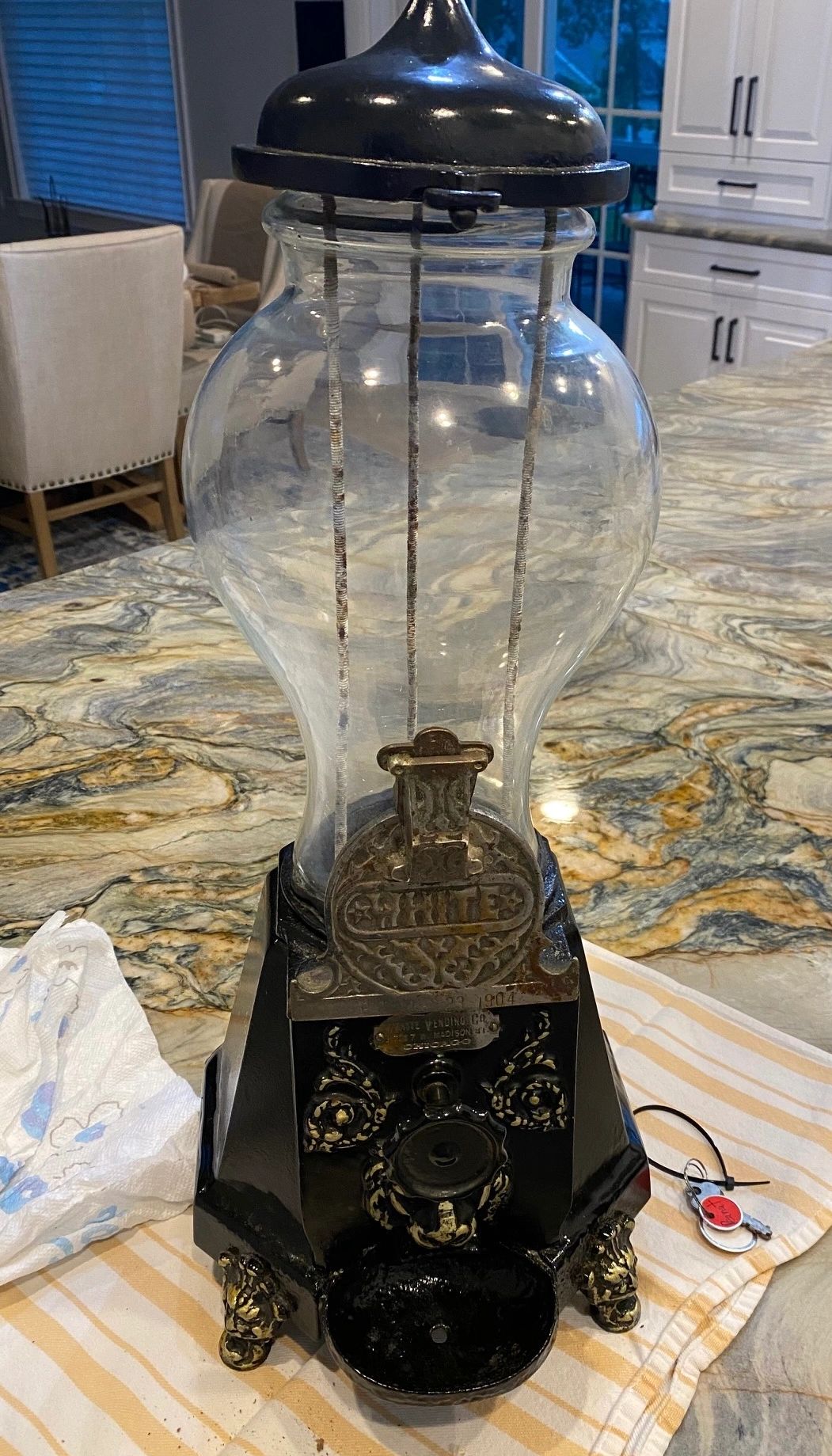 Even though the metal tag on back reads "Spartan Hot Flash" Sparta Mfg Co, there seems no doubt that the machine was made by Hance Mfg Co. Westerville, Ohio. Machine is made of cast iron and all original finish. This is one of my personal favorite globes.
